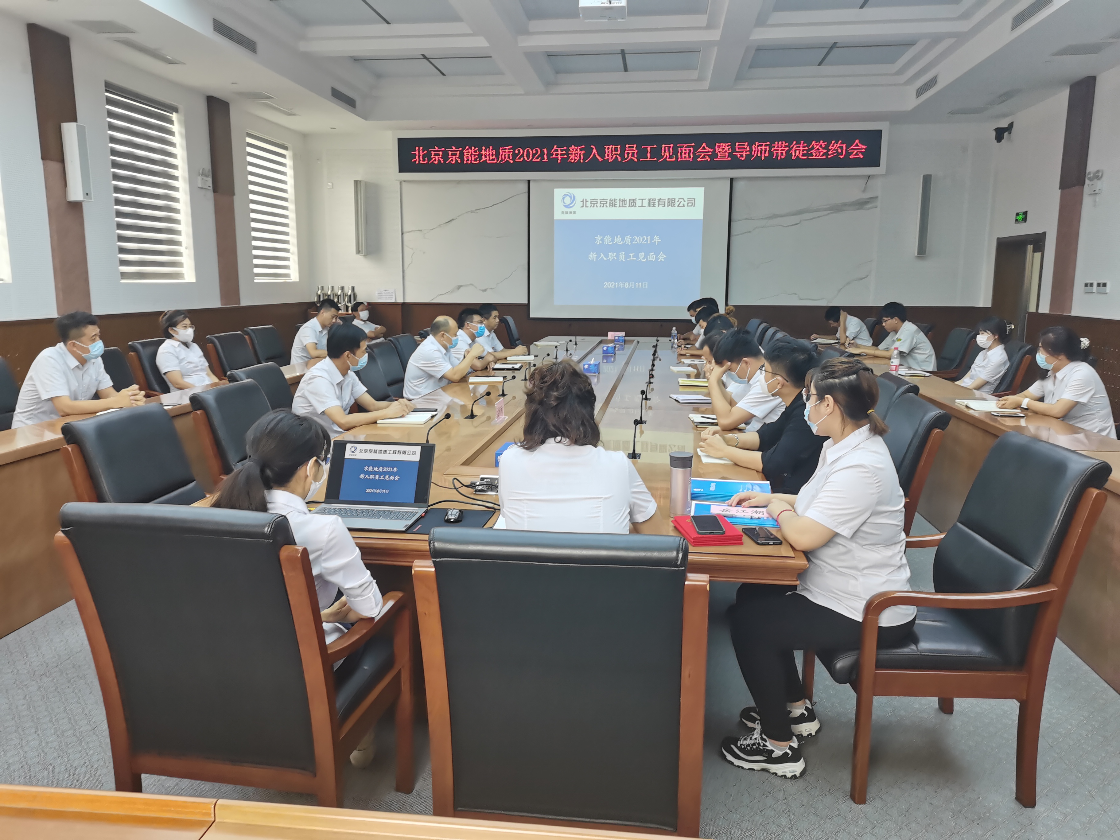 8月11日,北京京能地質工程有限公司2021年新入職員工見面會暨導師帶徒簽約儀式在京能建設集團第一會議室隆重舉行。新入職學生,2020年學生和導師代表及各職能部室、事業部、項目部負責人參加會議,公司黨總支書記王文考等班子成員出席會議。會議由公司人力...