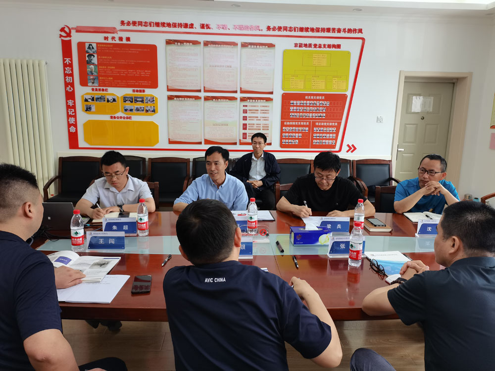 5月25日,中航勘察設計研究院有限責任公司副總經理彌尚銀,測試監測設計院黨支部書記、副院長張續,總工程師鄒桂高,經營開發部總經理王闖一行到京能地質開展交流活動。京能地質總經理助理、勘察分公司負責人孟軻荊與勘察分公司相關人員參加學習交流。