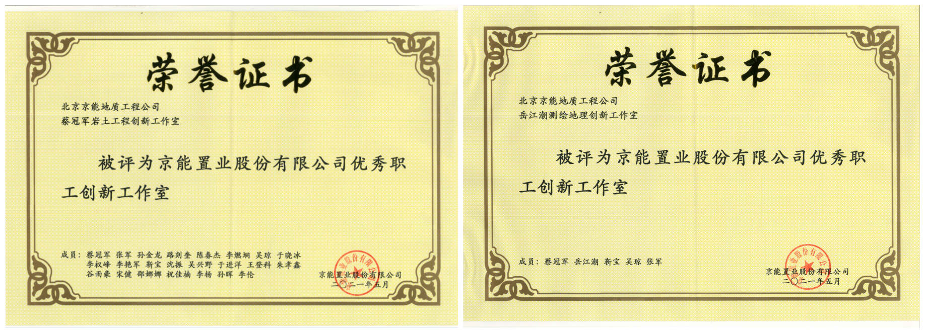 2021年12月10日,北京京能地質工程有限公司收到了京能地產平臺2020 年優秀職工創新工作室、科技創新、全員創新等三項多個榮譽證書。